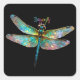 Stained Glass Colorful Dragonfly Quadratischer Aufkleber