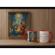 Bring the serene beauty of the Nativity into your home with this exquisite stained glass art coffee mug. This AI-generated masterpiece depicts the timeless scene of Mary, Joseph, and the newborn Jesus, bathed in the radiant glow of the Star of Bethlehem. The vibrant blues, reds, and golds, reminiscent of a grand cathedral window, create a peaceful and inspiring atmosphere. Adorned with delicate floral patterns and gentle animals, this design is perfect for celebrating the true spirit of Christmas. Whether you're enjoying your morning coffee or a cozy evening tea, this mug is a beautiful reminder of faith, hope, and the joy of the season. A thoughtful gift for loved ones or a cherished addition to your own collection.