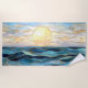 Bring calm, elegance, and coastal beauty to your beach days with this stained glass-inspired ocean sunset design. Flowing waves in layered blues and aquas meet a softly glowing golden sun, outlined with delicate gold-style accents for a refined, serene look.