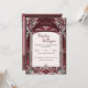 A stained-glass style wedding invitation, themed with colors of red and pink.