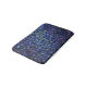 This vibrant bath mat features a close-up of an abstract mosaic pattern in shades of blue and purple, featuring irregular black outlines creating a stained glass effect with textured details. Finished in a mixed media art print.