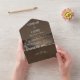 AUCH MIT EINEM QR CODE IM UAWG BEREICH ERHÄLTLICH. Sagen Sie "I Do" mit einer Touch von rustikalem Charme und Western Flair! Unsere Cowboy-Ranch-Hochzeitseinladungen verfügen über eine verwitterte Holzhütte und einen Holzfußboden, die das authentische Wesen der wilden Grenze einfangen. Zwei Paar ledergetragener Cowboystiefel stehen nebeneinander und symbolisieren so Ihre gemeinsame Reise. Weiche Saitenlichter blinken oben und sorgen für ein warmes, romantisches Glühen. Der Rücken präsentiert ein abgenutztes dunkelbraunes Lederdesign, das die rustikale Eleganz ergänzt. Ideal für Paare, die die Landschaft und die Cowboy-Lebensweise Liebe haben. Lasso die Herzen Ihrer Gäste und Set den Ton für Ihren unvergesslichen Tag. Foto von Melanie Mauer auf Unsplash.