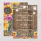 Rustikales Party-Design aus Stallholz mit einer Reihe von Leuchten, die Glaskeramik-Leuchten und Aquarellsonnenblumen verleihen, leicht zu personalisieren mit den Vorlagen Set für Sie.