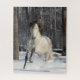 Un étalon andalou court dans la neige dans une forêt au Canada.