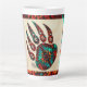 Dies ist eine einzigartige "One of a Kind" Tribal Bären Paw Latte Tasse! Es verfügt über einen amerikanischen Stammbärenpaw, der Schutz und gute Gesundheit darstellt...auf einem Tan Sandstone Hintergrund...Umgeben von einer Südwesttürkis-, Orangen- und Schwarzen Grenze! Dies ist ein Original Grafikdesign von Artist Kerry Miller.