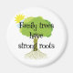 Ein zeichn eines Baumes mit Sonne und einer Wolke mit dem Titel "Familienbäume haben starke Wurzeln".