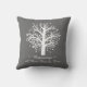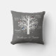 Stammbaum, weißer Baum auf Grau mit Namen u. Daten Kissen