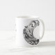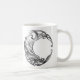 Stammesdesign mit einem Wolf auf einem Halbmond in Schwarz, Grau und Weiß.