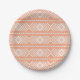 Nahtloses Stammbaummuster mit Linien, Pfeilen, Rundbussen und Dreiecksformen, dekoriert auf Korallenhintergrund