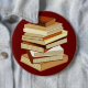 Stapel Bücher mit Abdeckungen in den hellen Schatten der Beige, des Brauns und des Elfenbeinweiß.