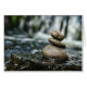 Ein Trio der glatten Felsen gestapelt durch den Wasserfall eines kleinen Teichs.