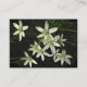 Diese Kunsthandwerkskarte mit Kunsthandwerk-Trading-Karte präsentiert die wunderschöne, jahrhundertealte Garten-Pflanze, bekannt als Star of Bethlehem (Ornithogalum umbellatum). Jede Blume hat sechs weiße Blätter und ein gelbes Zentrum. Die Blume sind Set auf einem dunklen, fast schwarzen Hintergrund.