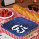 Helle Sterne in einem blauen Galaxie Sternmuster für die 65. Geburtstagsfeier. Das Alter kann geändert werden.