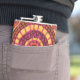 Diese angesagte Flasche ist mit einem Stoffbild abstrakten Mosaik mandala Sternmuster in brillanten Herbstfarben dekoriert. Es ist in einem tiefen lila Maronenkreis enthalten. Orangefarbene und rote Kreise auf einem gelben Feld umgeben das mittlere Ziel. Die Mitte ist grün.