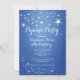 Jolie invitation à la fête en pyjama pour les filles présente un arrière - plan bleu à l'ombre avec un éclat d'étoile blanche. Notre invitation populaire de fête d'anniversaire en sommeil est disponible dans notre boutique dans un choix de couleurs varié et élégant.