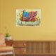 Wunderschönes Vintages Postkartenbild der amerikanischen Flagge mit Sternen, die herumstürzen und das Banner, das The Star Spangled Banner in Triumph Shall Wave liest. Drucken Sie diese Leinwand mit lackiertem Look und eingerahmten Optionen.