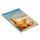 Ein personalisiertes Notizbuch mit einem niedlichen Foto eines Seesterns, der aufrecht im Sand positioniert ist. Unter seinen Armen befinden sich 2 kleine Muscheln, die sich bequem ausruhen. Set an einem Strand mit Wellen im Hintergrund.