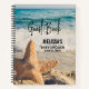 Ein personalisiertes Gästebuch mit landschaftlichem Foto. Ein großes Set aus Seestern direkt am Sandstrand. Ein schönes blaues Meer mit weißen Wellen im Hintergrund.