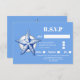 Une belle étoile de mer bleue et blanche repose sur un cercle blanc bordé d'un faux argent (qui donne une touche de luxe à la carte réponse) encadrée par un arrière - plan bleu océan. Les modèles blancs et les cases à cocher apparaissent à droite du graphique pour que vos invités vous complètent et vous communiquent leurs préférences en matière de fréquentation et de repas. Ce design est idéal pour un thème "étoile de mer", plage, destination côtière, mariage "sous la mer", anniversaire ou événement.
