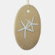 Two starfish in beach sand on an oval hanging ornament. Add to the Christmas tree as a memento of a special time or momentous chance. Four lines of template text let you customize as needed with names, info - such as "first Christmas", or "our vacation" text - and place and year. Perfekt to celebrate a warm climate holiday memory.