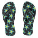 Erwachsenenflip-Flops perfekt für Ihren Sommerspass, hier in schwarzer Farbe mit einem farbenfrohen Seesternprint gezeigt. Passen Sie sich an oder kaufen Sie, wie es ist.
