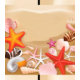 Eine lebendige Anordnung von Muscheln und Seestern auf einem Sandstrand.