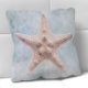 Coastal Blau und Peach Cream Not Strand Starfish Kissen. Starfish in der Sonne gebleicht Denim Blau und Sahne mit Anklängen von aquamarin, Korallen, grau und braun. Dieses Strandkissenkissen ist perfekt für Stranddekoration, tropische Wandkunst, Küstendekoration, Strandhäuser und Hütten am Meer.