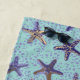 Starfish im Sand Pool und Strandtuch. Farbenfrohe tropische Seesterne in Rosa, Blau, lila, Grau, Taupe, aquamarin und braun. Das Stück zu akzentuieren ist in Lila koralisieren. Meer, Küste, Wassersport, Strandhaus inspiriert Badezimmer Dekoration.