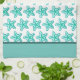 Dieses Küchentuch ist auf einem weißen Handtuch ausgestellt und bietet aquamarine Aquarellbilder von Seestern. Passen Sie dieses Objekt an oder kaufen Sie es wie gezeigt.