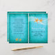 Paire Starfish et voile turquoise destination tropicale mariage de la plage et programme plié de fête avec un couple d'étoiles de mer orange sur un voile blanc ondulé bleu turquoise et turquoise grunge taché arrière - plan. Ce design aqua mariage moderne fait partie d'un ensemble mariage ou d'une collection de mariages et est un modèle entièrement personnalisable parfait pour un mariage d'été de plage de destination. Il faut le plier au centre. Choisissez seulement ce type de papier-valeur comme il se plie bien.