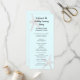 Grosses, zweiseitiges, lässiges Hochzeitsprogramm am Strand mit Seestern. Blassblau mit grauem Sternendesign auf hohen Flachkarten bedruckt. Sie können beide Seiten leicht anpassen, indem Sie den Text in einem schwarzen Skript für den Titel und die gedruckten Schriftart für die Erholung einfügen. Fügen Sie Leerzeichen hinzu, wo dies zur Ausfüllung der Formulierung erforderlich ist.
