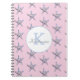 Beautiful custom name notebook with a colorful watercolor Starfish pattern. Notebook with personalized name in seamless delicate Starfish in pink.