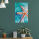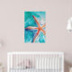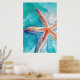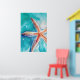 Dieser farbenfrohe Aquarelldruck zeichnet sich durch eine türkisblaue Ozeanwelle aus, die einen schönen Seestern umgibt. Dieser hübsche Ausdruck fügt Ihrem Strand-Zuhause oder jedem Strandbereich einen Farbtupfer hinzu.