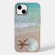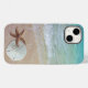 Starfish und Sand Dollar Strand Szene iPhone Fall. Für den Strandliebhaber und Beachcomber passt dieser Fall viele Modelle des Telefons. Türkisblaues Meerwasser, kleine Surfbretter am Ufer und Sand am Strand - das ist das Bild. Weiße Sand-Dollar-Bilder und braune Meeressternbilder schmücken den Boden der Strandszene.