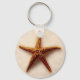 Strandgeschenk Schlüsselanhänger mit Seestern auf dem Sand in den Farben Beige und Braun. Ein Star-Fisch-Key-Inhaber macht ein großartiges Gastgeschenk für einen Strand- oder tropischen Themenabend, Geburtstag, Veranstaltung oder Schlüsselanhänger zu einem günstigen Preis.