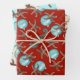 Geschenkpapier mit Seestern und Meerpferden zum Thema Strand. Jedes Blatt hat das gleiche Design, aber in drei Farben. Aqua-blaue Ornamente, braune Seesterne und blaue Meerpferde werden in einem größeren Muster über dunkelrot, beige und hellblau gedruckt. Jedes Blatt ist groß (19x29 in.), um ein großes Geschenk oder ein paar, die klein sind.