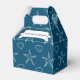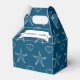 Weiße Seesterne und Muschelmuster auf ozeanblauem Hintergrund. Dekorative Gefälligkeitsboxen. Ändern des Namens, um ihn anzupassen. Geschenkidee für Groß und Klein, die Liebe des Meeres und des Meeres.