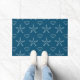 Weiße Seesterne und Muschelmuster auf ozeanblauem Hintergrund. Maßgeschneiderte Türmatten. Geschenkidee für Groß und Klein, die Liebe des Meeres und des Meeres.