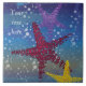 In dieser stilisierten Kunst werden farbenfrohe Seesterne gegenüber einer tiefen Meereslandschaft hervorgehoben.