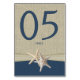 Starfish Tischnummer und Burpplappkarte zum Kompliment unseres Beach Amore Einladungs-Set in marineblau, kann personalisiert und individuell bestellt werden. Alle Teile dieser Karte sind gedruckt. Es ist kein richtiger Einbruch oder Seestern angebracht.