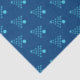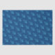 Blaues Weihnachtsbaumgewebe-Papier. Ein lustiges tropisches Design, mit einem Urlaubspalast aus Seestern/Seestern, einem Single Sand Dollar (als Baumstamm). Die Bäume sind aquablau auf einem marineblauen Hintergrund. Ideal für die Verpackung von Geschenken in einem warmen Klima.
