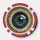 Nur die Iris und der Pupil eines Auges. Die Iris besteht aus drei konzentrischen Ringen, die jeweils tiefer als die letzte eindringen. Die äußerste Farbe ist weiß mit gelbbraunen Streifen. Die Mitte ist dunkelblau mit weißen bis hellblauen Streifen. Die grüne Mitte ist mit gelben Streifen überwunden. Der Schüler ist klein, rund und schwarz.