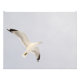 Ein subtiles Bild mit einem Möwe, der über dem Kopf in einem ruhigen Himmel fliegt.