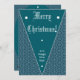 Mit dieser eleganten Weihnachtskarte, die ein nahtloses Muster von aquamarin-blauen Schneeflocken auf aquamarin-blauem Hintergrund aufweist, können Sie feierlich feiern. Die symmetrischen sternförmigen Schneeflocken und das miteinander verbundene Rhombus-Design schaffen ein eindrucksvolles, geometrisches Winterthema. Mit der herzlichen Botschaft: "Möge Ihr Urlaub so hell sein wie eine Nacht mit Sternenhimmel", ist diese Karte perfekt, um Freude und Wärme in dieser Saison zu verbreiten.