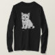 Starry Kitty in Black Shirt Women Ein Vintag inspiriert Katzendesign, das minimale Linienkunst mit kosmischer Touch verbindet. Ideal für Katzenliebhaber, die Eleganz und zeitlosen Stil lieben.