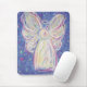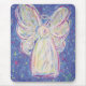 Die Kunst zeigt einen sanften Pastellengel vor einem sanft blauen Sternenhintergrund. Das Bild wurde zunächst mit Acryl gemalt und dann in Pastellfarben fertig gestellt, um weiche leuchtende Farben zu erzeugen.