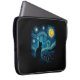 Protect your laptop with this artistic sleeve featuring a cat silhouette gazing at a swirling, starry night sky inspired by Van Gogh. A perfect gift for art lovers and cat enthusiasts, blending classic art with modern tech accessory style.