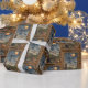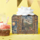 Einzigartiges Halloween-Packpapier im Viktorianischen Stil mit einem Sternenbild im Nachthimmel, das die Kontur einer Hexe bildet, die auf einem Besenstiel fliegt.