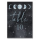 Führen Sie Ihre Gäste mit unseren Starry Night Moon Phases Zodiac Celestial Collection Tischnummern zu ihren Plätzen. Diese eleganten Tischnummern sind mit einem schwarz-weißen Hintergrund und Sternen geschmückt und schaffen ein himmlisch inspiriertes Design, das Ihre Gäste verzaubern wird. Die Tischnummern selbst sind in einer schönen blauen Farbe hervorgehoben, die der Farbe der fünf Mondphasen entspricht, die auf jeder Karte dargestellt sind. Die Verwendung der Mondphasen fügt Ihrer Hochzeitsdekoration eine Touch himmlischer Eleganz hinzu, die diese Tischnummern perfekt für Paare macht, die von himmlischer Schönheit, Astrologie oder dem mystischen Reiz des Nachthimmels gezeichnet werden. Die für die Tischnummern- und Mondphasen verwendete blaue Farbe verleiht dem Design einen farblichen Pop, der einen auffallenden Kontrast zum Schwarz-Weiß-Hintergrund schafft. Jede Tischnummer enthält das Wort "Tabelle", gefolgt von der Zahl, alle in derselben blauen Farbe, sodass sie leicht zu lesen ist und Ihre Gäste leicht die ihnen zugewiesenen Tische finden können. Das himmlische Thema dieser Tischnummern verleiht Ihrem Hochzeitsempfang ein Gefühl von Magie und Wunder und schafft eine unvergessliche und bezaubernde Atmosphäre für Ihre Gäste. Erleben Sie Ihren Hochzeitsempfang mit unseren Tischnummern der Sternennachtsmondphasen Zodiac Celestial Collection. Lass die Schönheit des Kosmos führen Ihre Gäste zu ihren Sitzplätzen und schaffen eine himmlische Atmosphäre, die Ihren Hochzeitstag wirklich unvergesslich machen wird.