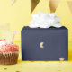 Das Design der Sternennacht ist mit kleinen goldenen Sternen und Monden auf dem Hintergrund des dunkelblauen Himmels gestaltet.